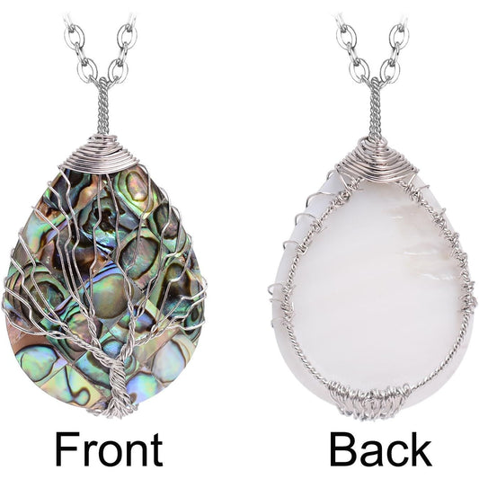Tear Drop Abalone Shell Pendent Necklace Wire Wrap Abalone Shell Tree of Life Pendant Necklace